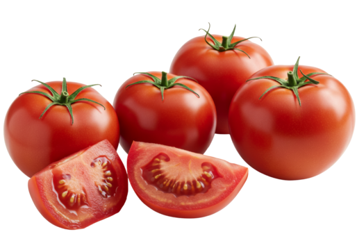 Fresh Red Tomatoes with One Sliced, Showing Juicy Interior