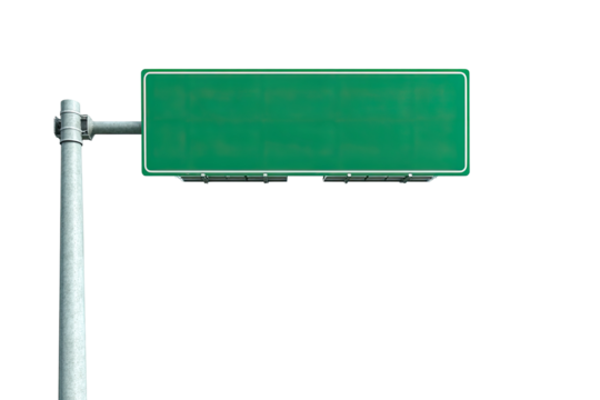 Empty green road sign mounted on a metal pole