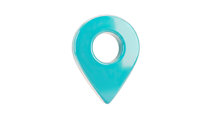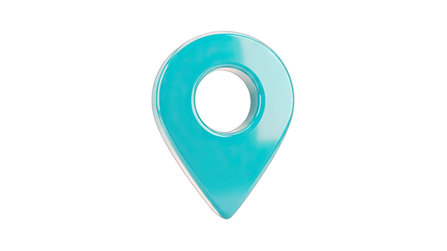 A stylized location pin on a solid black background, suggesting navigation and destinations.