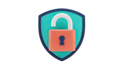 3D Icon of an Open Padlock on a Shield
