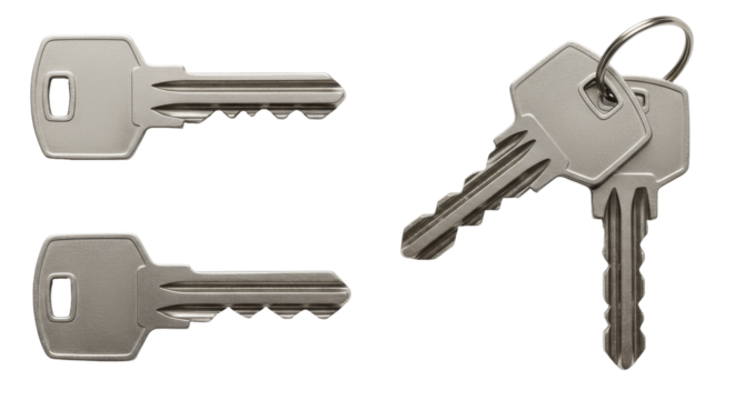 A bunch of keys on transparent background for business use in security and locksmithing industry