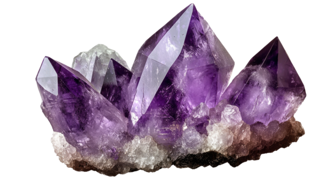 Amethyst crystal isolated on a white background showcasing its vibrant purple hues and natural beauty