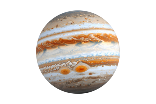 The majestic planet jupiter, showcasing its swirling clouds and great red spot, isolated on white isolated on transparent background