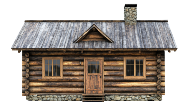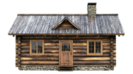 Snow globe with a cheerful snowman by a cozy log cabin, snow falling inside, illustrating winter holidays, transparent background