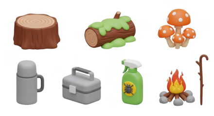 Boy Scout Running Cheerfully Near Tent with Hat Trees Log and Lantern in Cartoon Style on Transparent Background