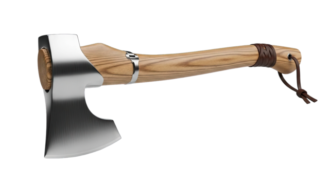 Sharp Metal Axe with Wooden Handle Perfect for Wood Cutting Outdoor Survival Camping and Hunting on White Background