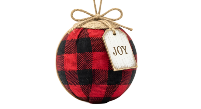 Rustic Buffalo Plaid Ornament with joy Tag for Christmas Decor