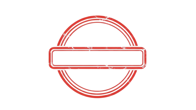 Red grunge stamp PNG isolated on transparent background, retro circular frame with rectangular banner for logo design and branding