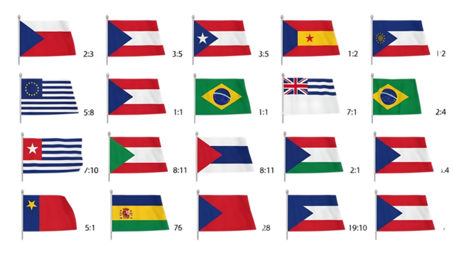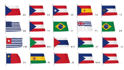 Collection of 16 national flags from various countries around the world set on a transparent background