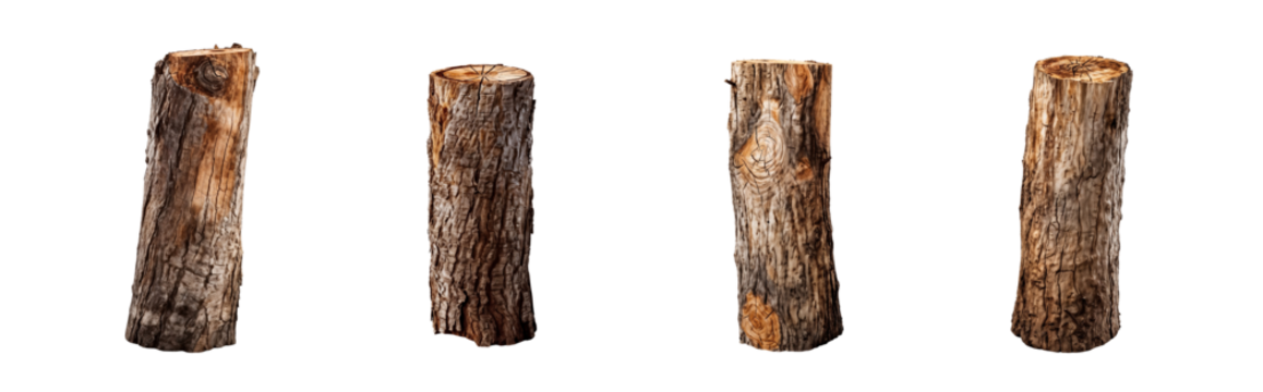 Wooden tree log trunk stump wood on transparent background cutout, PNG file. Many assorted different Mockup template for artwork design