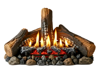 Burning fire logs isolated on a transparent or white background