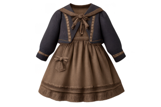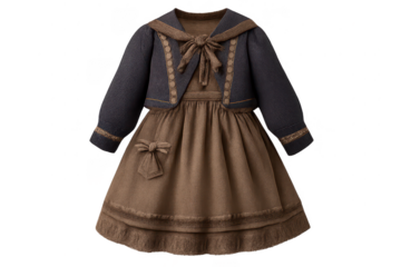 Elegant Lolita dress with jacket on transparent background studio shot.