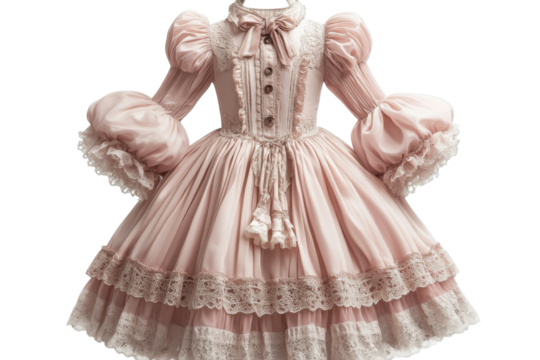 A Delicate Blush Pink Lolita Dress, Adorned With Exquisite Lace And Puffed Sleeves, Evokes A Sense Of Whimsical Romance And Timeless Elegance Against A Pure Isolated on Transparent Background
