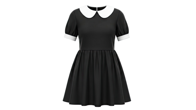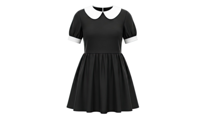 Black puff sleeve dress with Peter Pan collar and cuffs