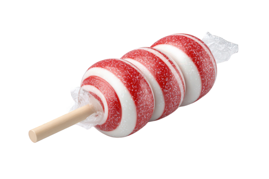 Wrapped lollipop with swirl pattern and transparent plastic wrapper, festive and fun, transparent background