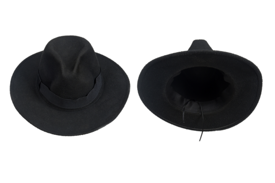 natural black felt hat wide brimmed hat isolated on white background head protection and style