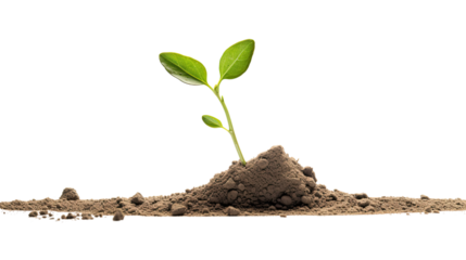 Photograph of a lone green shoot symbolizing new life amidst barren land, isolated on a pure white background