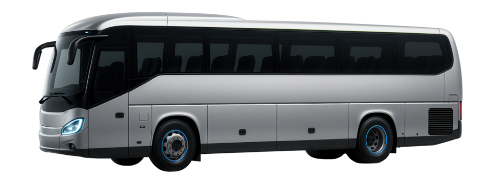 Intercity bus with high-visibility LED headlamps and a streamlined silhouette