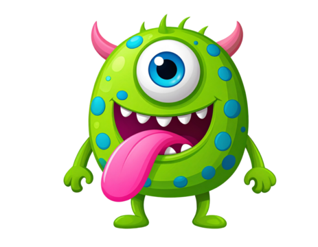 One-Legged Spotted Green Monster with Long Tongue, Side View, Colorful Creature PNG