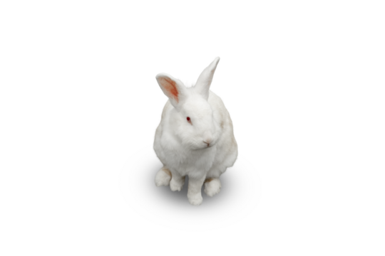 White rabbit with long ears is sitting calmly, isolated, PNG