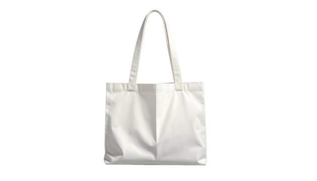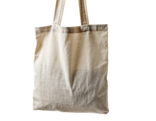 Beige fabric tote bag with long handles photographed in studio for everyday use. isolated on transparent background, png, hanging illustration
