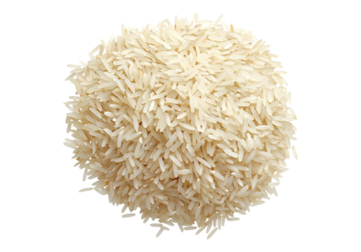 Close up pile of basmati rice. Transparent background .Isolated PNG