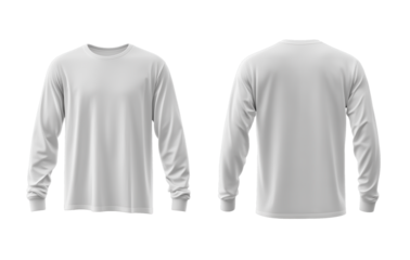 White long sleeve mock up, front and back view, longsleeve t shirt mockup template isolated on transparent background.