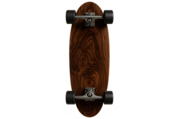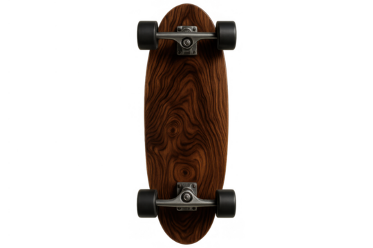 A sleek black longboard surfboard with subtle beige stringer detailing along the center, featuring a streamlined design for smooth gliding on waves, set against a transparent background