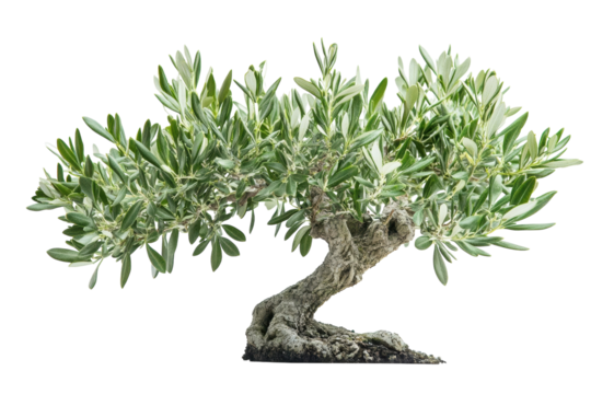 Serene olive bonsai tree symbol of peace and longevity isolated on black background with on transparent background