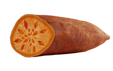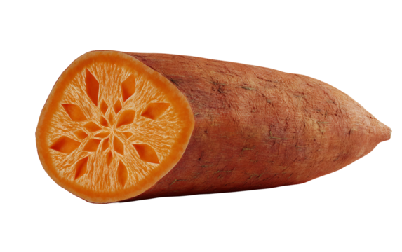 Ripe sweet potato displayed in longitudinal slices emphasizing organic freshness, crisp texture, and farm quality isolated on transparent background PNG