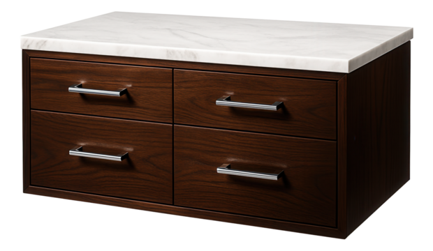 A bathroom dresser with a marble countertop, providing a touch of luxury in a high-end apartment bathroom.