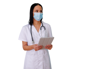 Young nurse Indian woman isolated looks aside smiling, cheerful and pleasant.