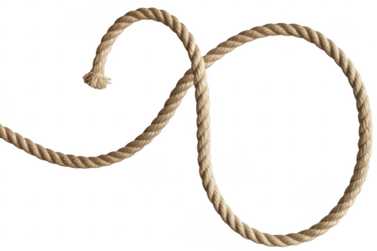 Rope loop with knot creating a hangman's noose shape, rustic strong fiber cord isolated on transparent background