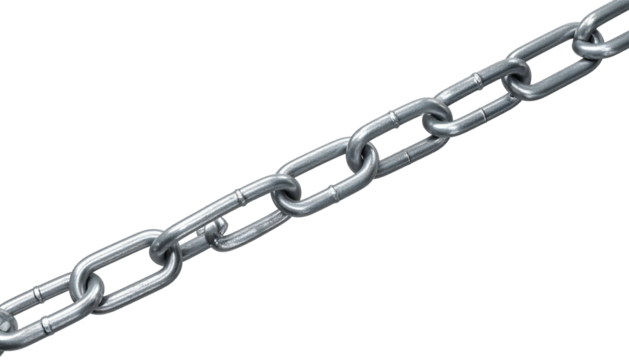 A diagonal, silver metal chain against a black background. Realistic rendering