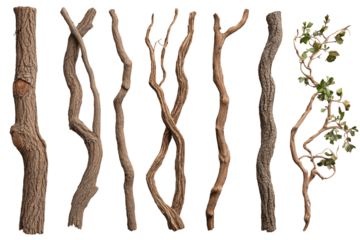 Verschiedene Baumrinden und Lianen mit Ästen PNG mit transparentem Hintergrund