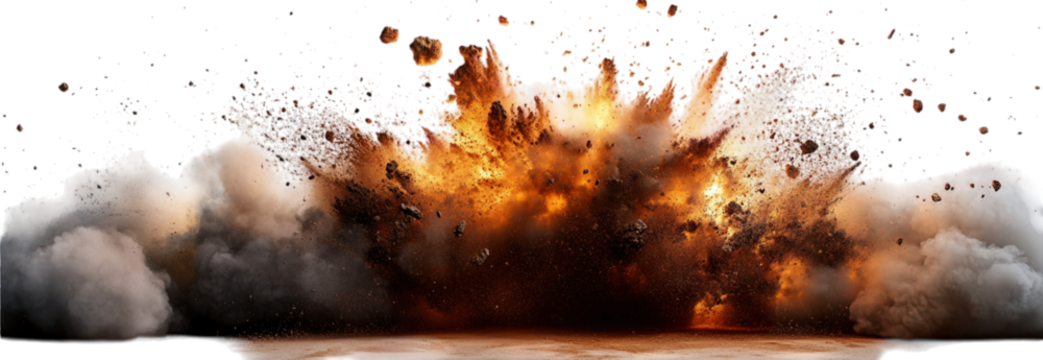 An explosive burst releases intense energy, sending a vivid cloud of smoke and debris into the air, illustrating the power of ammunition in action at an unspecified location