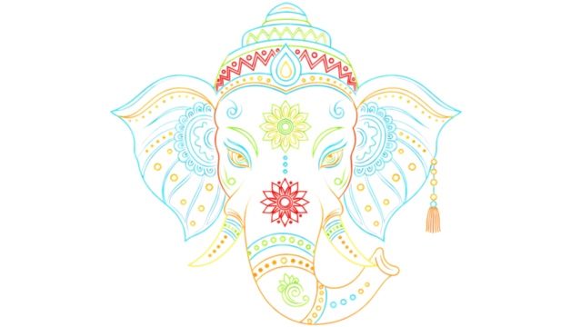 Vibrant and intricate line art illustration of lord ganesha against a dark background isolated on transparent background