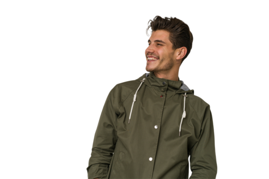 Young latin woman with red lipstick is laughing out loud on transparent background
