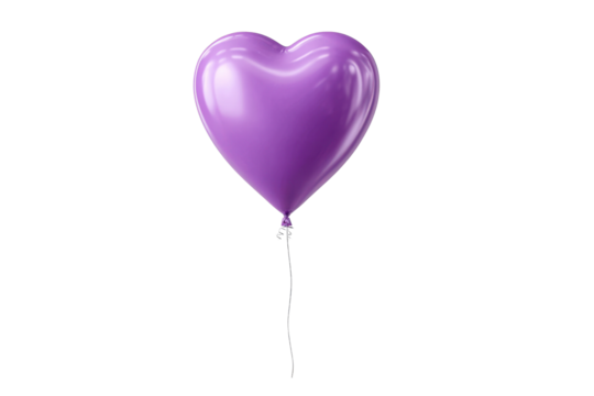 Single purple heart shaped balloon floating against black background love celebration, Isolated On White Background, Png Transparent