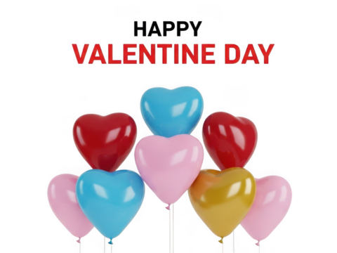 Happy valentine's day text with heart-shaped balloons on transparent background