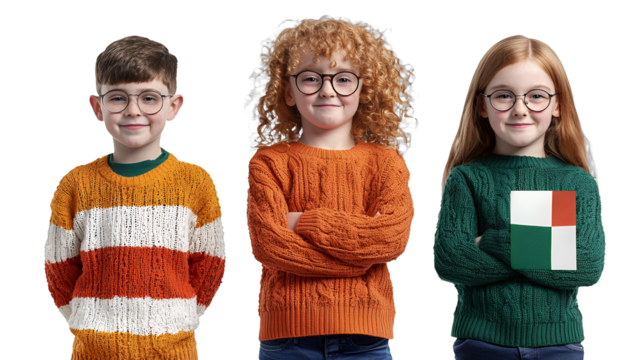 a boy and a girl wearing glasses and sweaters with a flag on a transparent background, PNG image, PNG file, Generative art.
