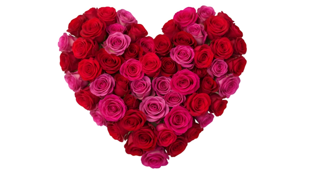 A beautiful heart shape arrangement made entirely of vibrant red roses, isolated on transparent background for romantic and love concepts