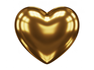 Three shiny gold heart shaped objects isolated on transparent background