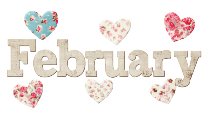 Decorative typography "February" with subtle heart dot on the letter i style, isolated on a white background