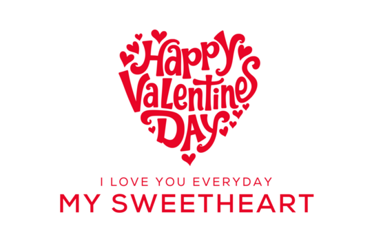 Happy valentine's day heart message isolated on transparent background