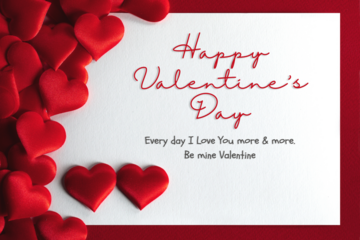Happy valentine's day greeting card design, love text, valentine's, hearts, typography, celebration, romantic, isolated on transparent background
