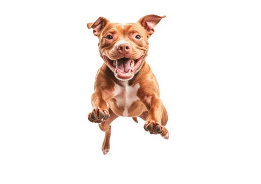 A happy jumping dog isolated on transparent background