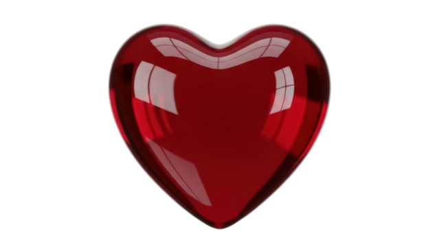 Shiny red heart isolated PNG, glossy love symbol on transparent background for Valentine s Day and romantic designs, 3D rendering