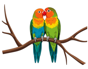 Lovebirds on Branch Isolated on Transparent Background