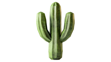 Saguaro style cactus, green shades, low poly look, cut out transparent